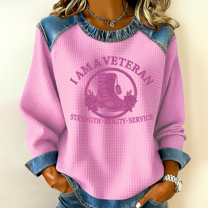 Women's Veteran Print Casual Lapel Sweatshirt
