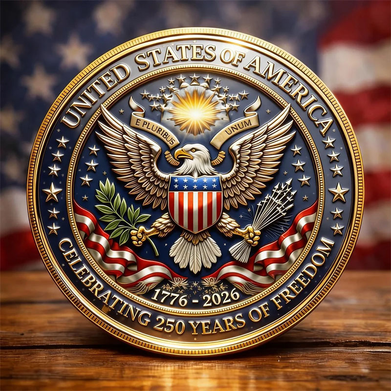 1776–2026 United States of America Patriotic Eagle & Liberty Bell Challenge Coin