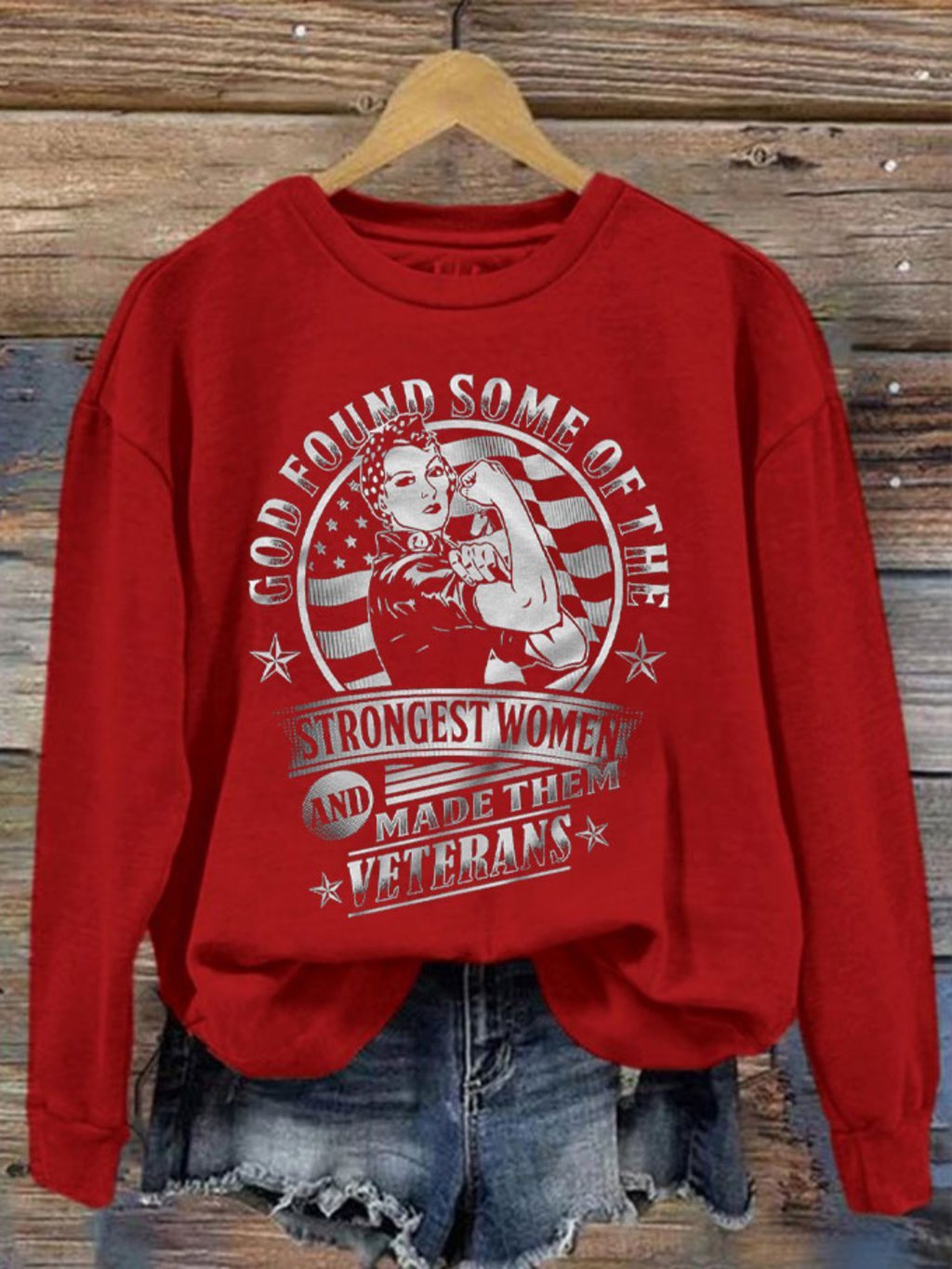 Women's God Found Some of The Strongest Woman And Made Them Veterans Day Printed Sweatshirt
