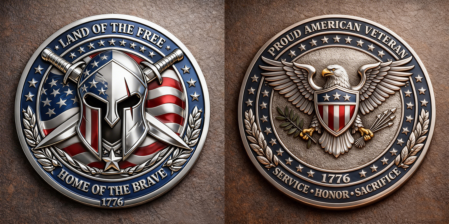 1776 American Veteran Challenge Coin – Land of the Free Home of the Brave Patriotic Eagle Commemorative Coin