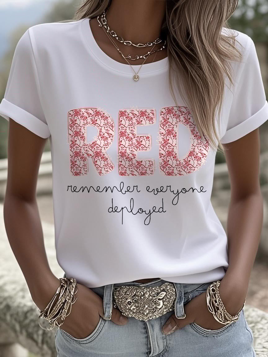 Women's On Fridays We Wear RED Remember Everyone Deployed Print T-shirt