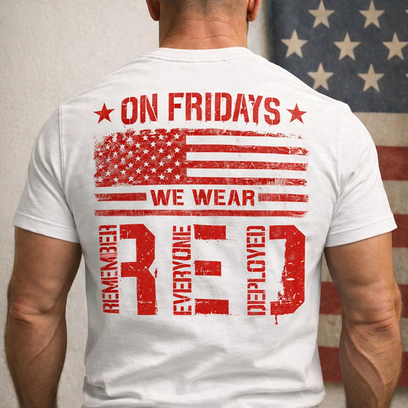 Women's On Fridays We Wear RED Remember Everyone Deployed Print V Neck T-shirt