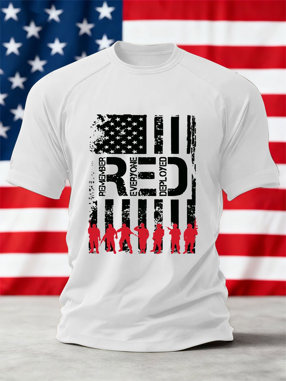 Men's We'll Wear Red to Remember Them Printed Crew Neck Short Sleeve T-shirt